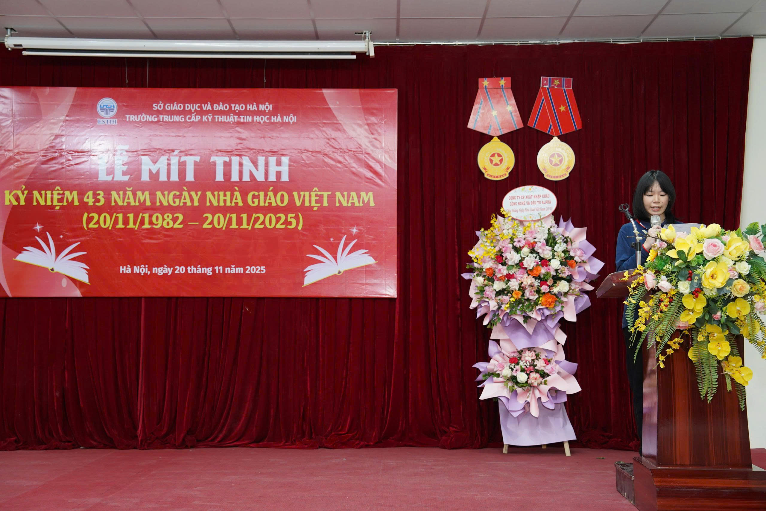 Ngày Nhà giáo Việt Nam không chỉ là ngày hội của các thầy cô giáo hiện đang công tác, giảng dạy tại nhà trường mà còn là ngày hội của các thế hệ nhà giáo. Đây là cuộc gặp gỡ giữa quá khử vẻ vang và hiện tại kế thừa. Chúng ta sẽ tiếp tục đồng hành, xây dựng và phát triển trường TC Kỹ thuật tin học Hà Nội, đưa nhà trường ngày càng vươn xa, khẳng định vị trí của mình trong lĩnh vực Giáo dục nghề nghiệp của Thủ đô.