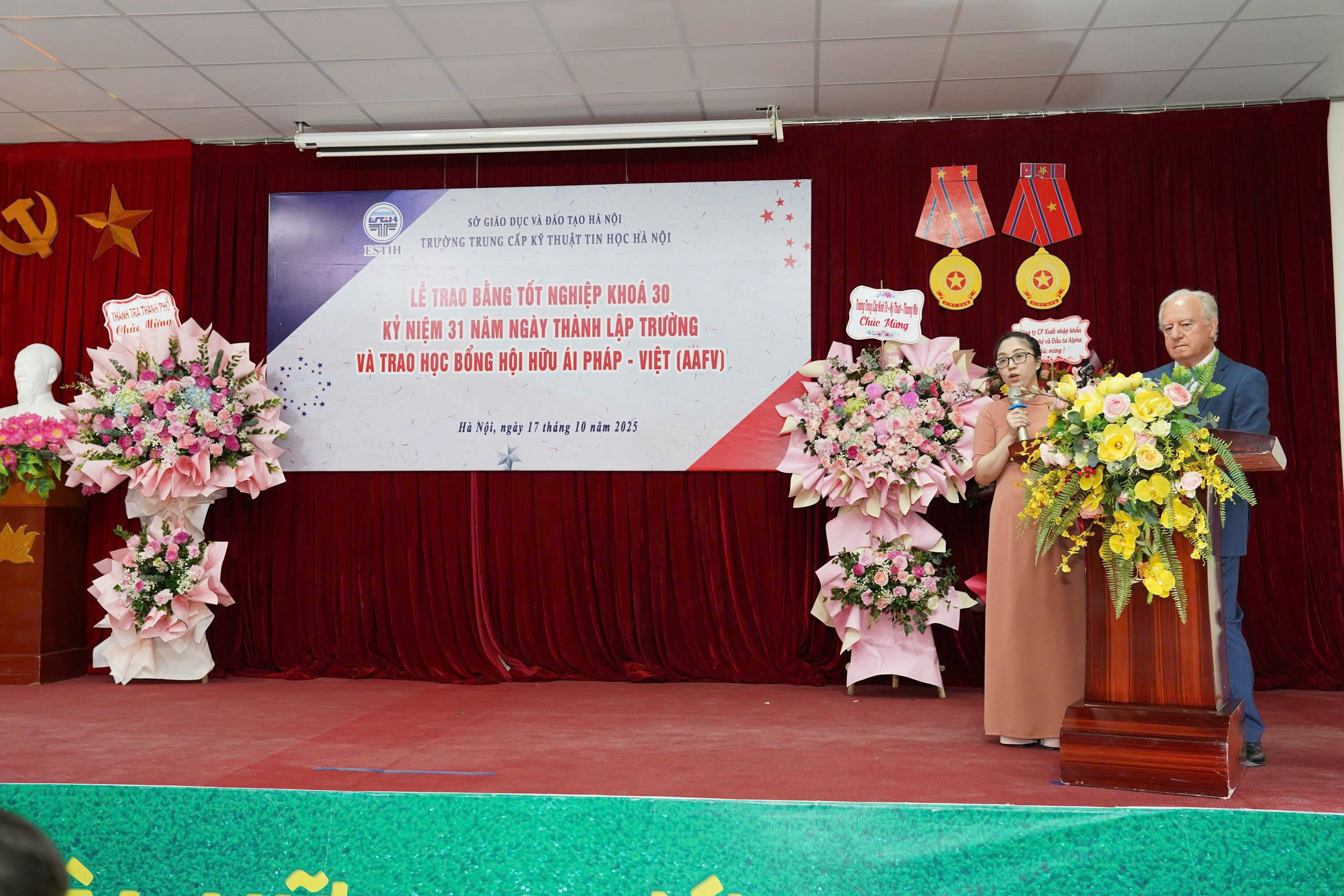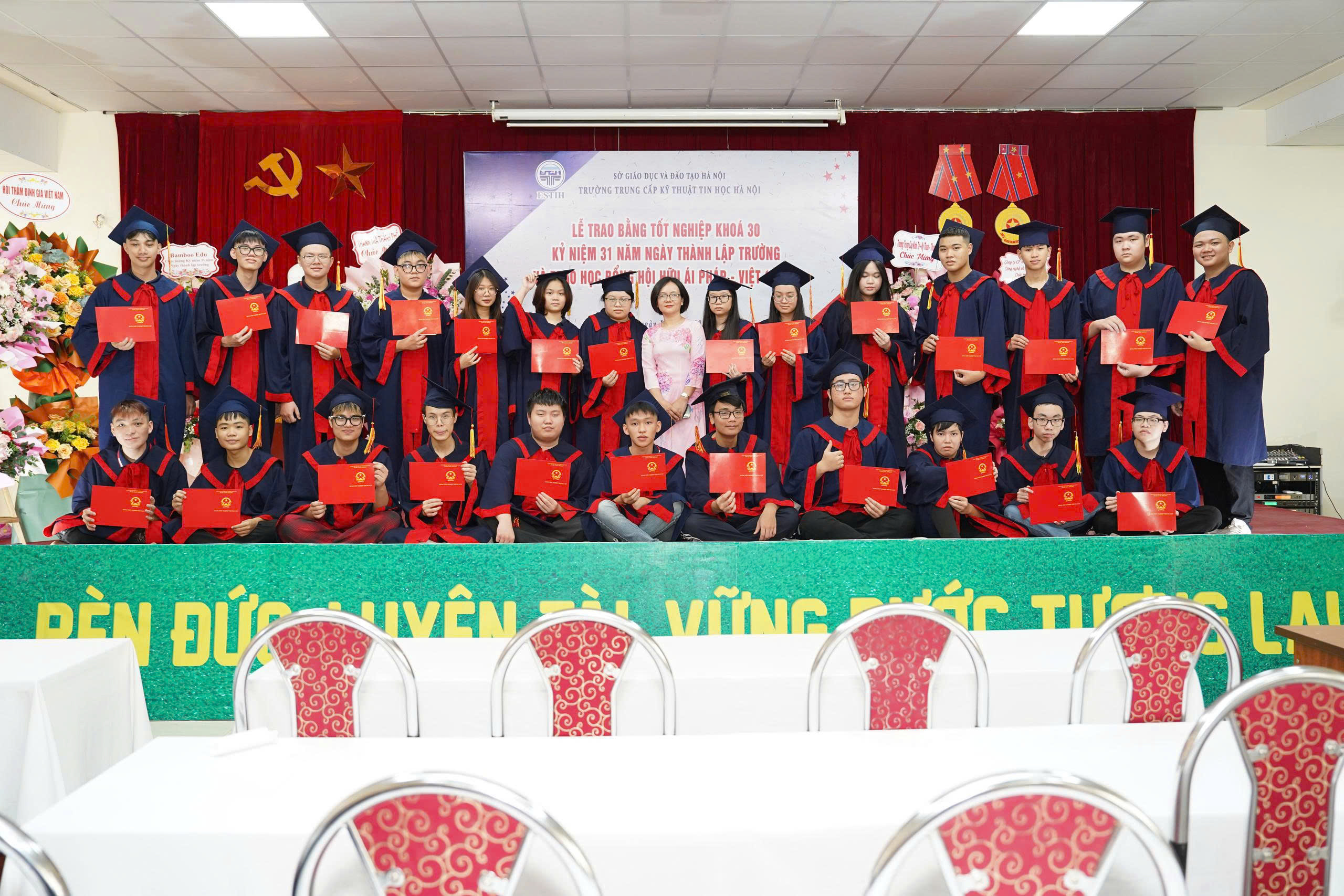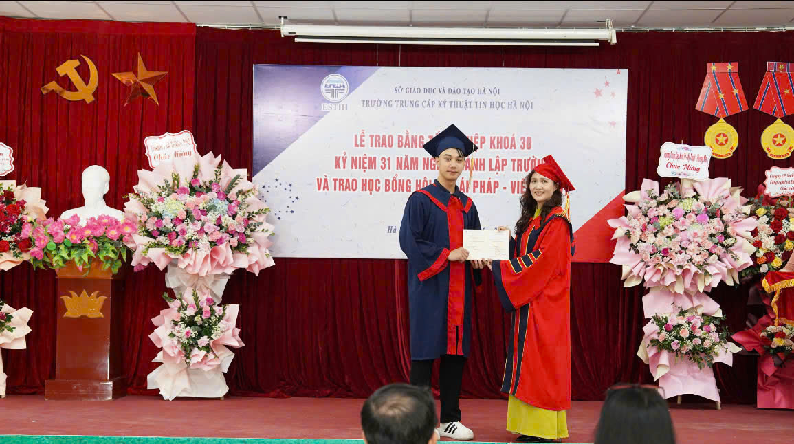 Sáng ngày 17 tháng 10 năm 2025, trường Trung cấp Kỹ thuật tin học Hà Nội ESTIH đã long trọng tổ chức Lễ trao bằng tốt nghiệp Khóa 30; Kỷ niệm 31 năm ngày thành lập trường và trao học bổng của Hội Hữu Ái Pháp Việt cho học sinh của nhà trường.