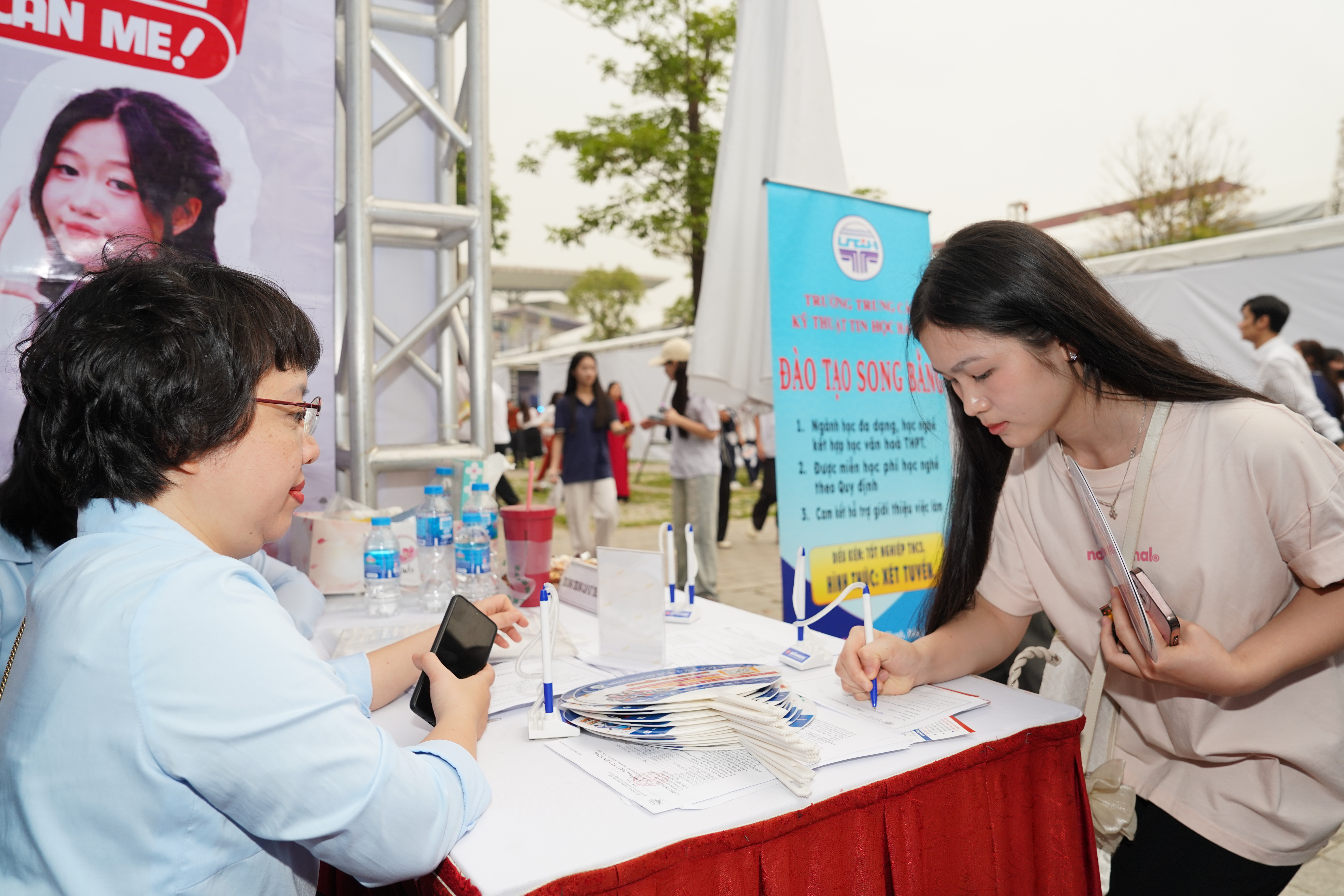 Tại Ngày hội, với những hoạt động và trò chơi hấp dẫn, gian hàng của trường Trung cấp Kỹ thuật tin học Hà Nội đã thu hút được sự quan tâm của đông đảo các em học sinh và giáo viên tới tham quan. Ban tư vấn tuyển sinh của nhà trường cũng đã giới thiệu, tư vấn trực tiếp các thông tin hữu ích liên quan đến mùa tuyển sinh năm học 2026 -2027 như: các ngành học đang là xu thế, chương trình đào tạo, cơ hội việc làm… đến các em học sinh, sinh viên, các bậc phụ huynh và người lao động tại Ngày hội.