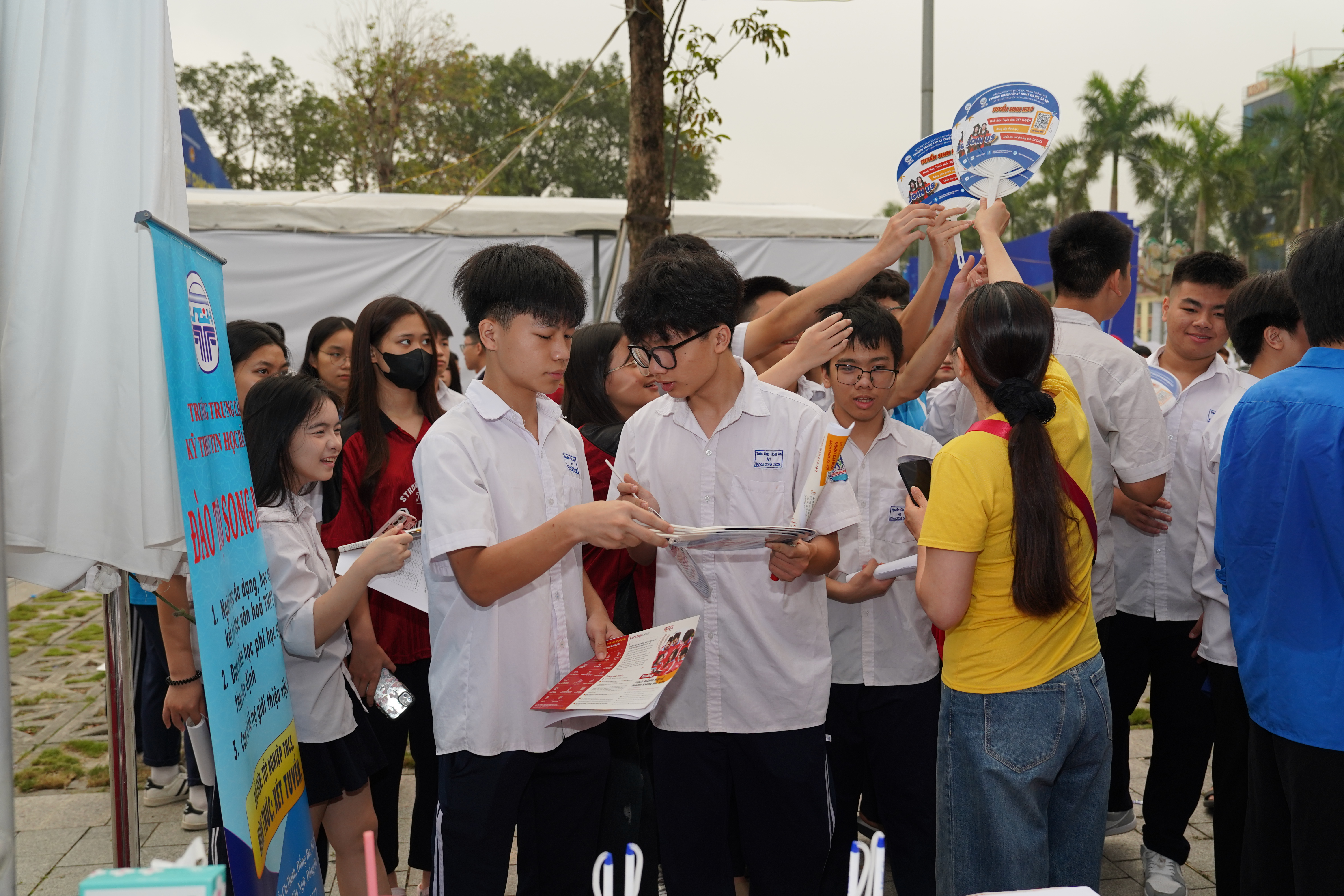 Học sinh đăng ký thông tin tư vấn tuyển sinh tại gian hàng của nhà trường.